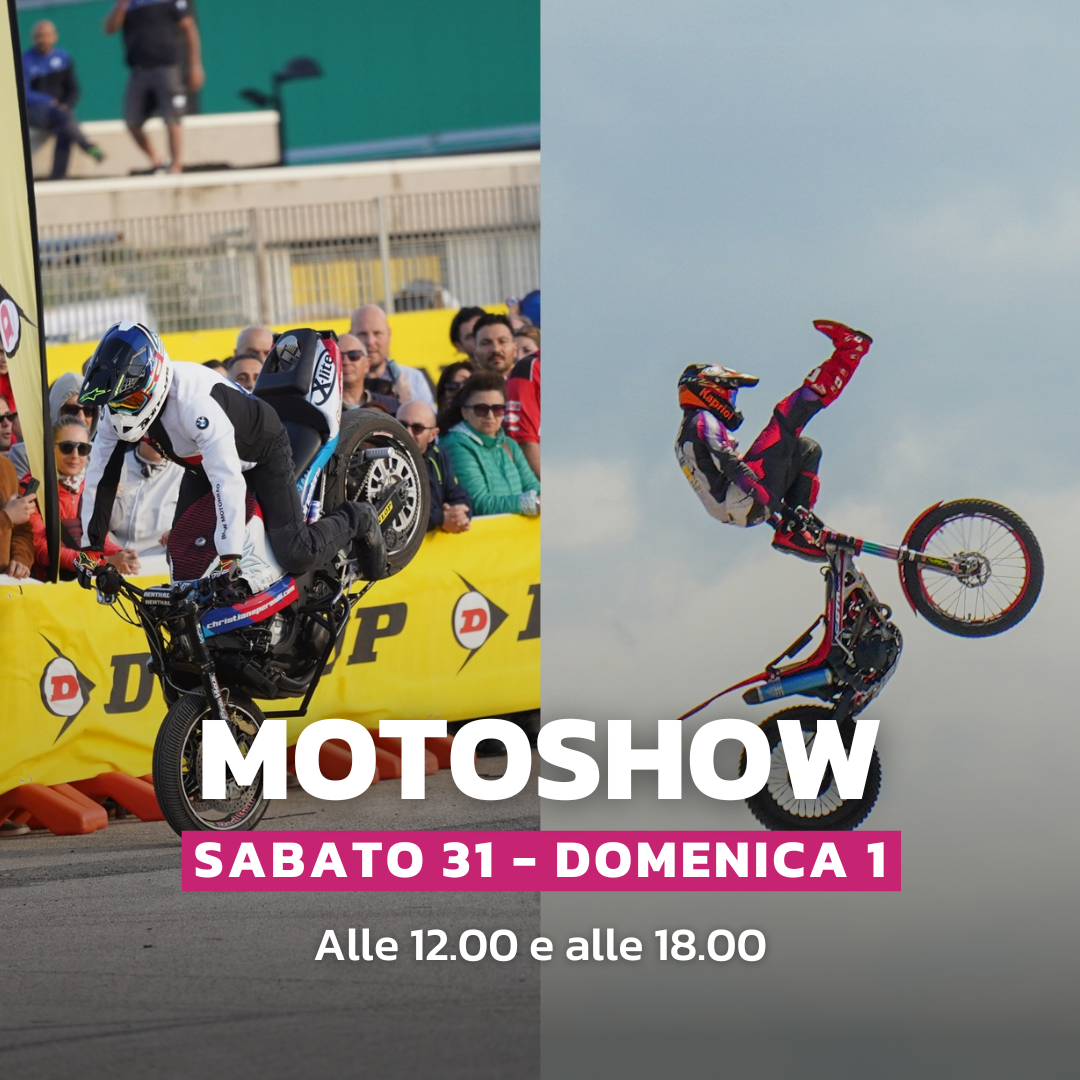 L'area più adrenalinica del moto village in cui gli stuntmen si esibiranno con acrobazie e spettacoli emozionanti esclusivamente su due ruote!